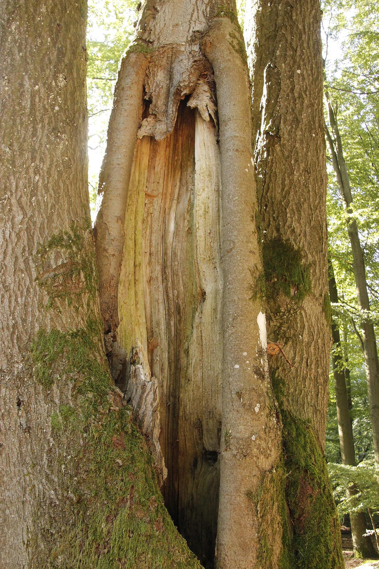 Das Ziel der Försterinnen und Förster ist es, 10 Biotopbäumen pro Hektar im Staatswald zu erreichen. Solange von ihnen keine Gefahr für unsere Mitarbeiter und Waldbesucher ausgeht, dürfen diese besonderen Individuen im Wald stehen bleiben, bis sie von selbst zerfallen und zu Totholz werden. Es sind, bei genauem Hinsehen, an solchen Bäumen ganz viele unterschiedliche Strukturen zu entdecken, auf die unsere Waldbewohner angewiesen sind.