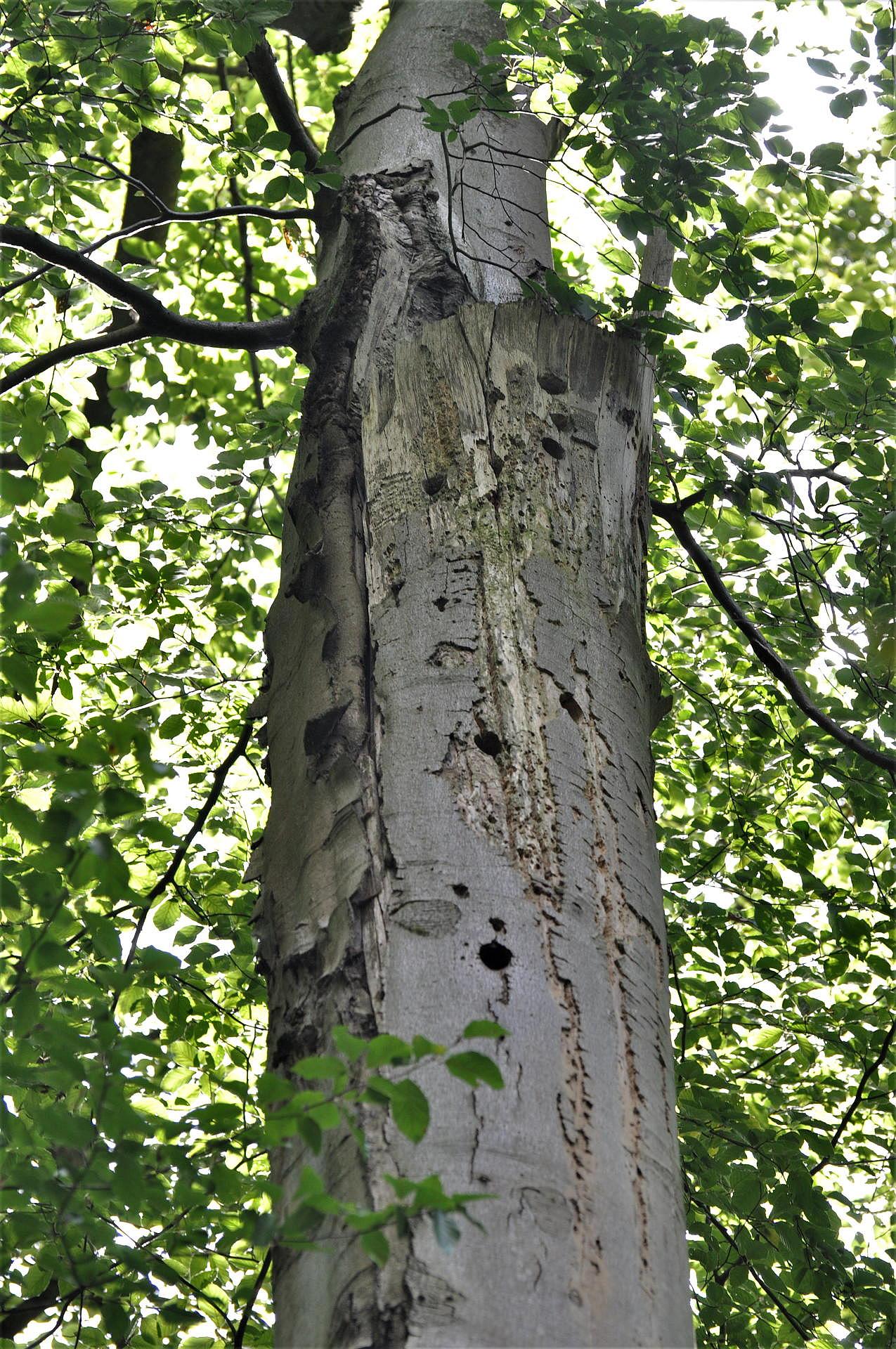 Ganz genau kann man das nur sagen, wenn man auch das Tier selbst entdeckt oder wenn man im Rahmen der Forschung über spezielle Kameras das Höhleninnere beobachtet. Ein Merkmal, welches allerdings für die Nutzung durch den Schwarzspecht spricht, ist der Umriss der Höhle. Auf dem Foto der Buche mit der Höhle sieht man, dass der Umriss hellbraun und damit frisch ist.