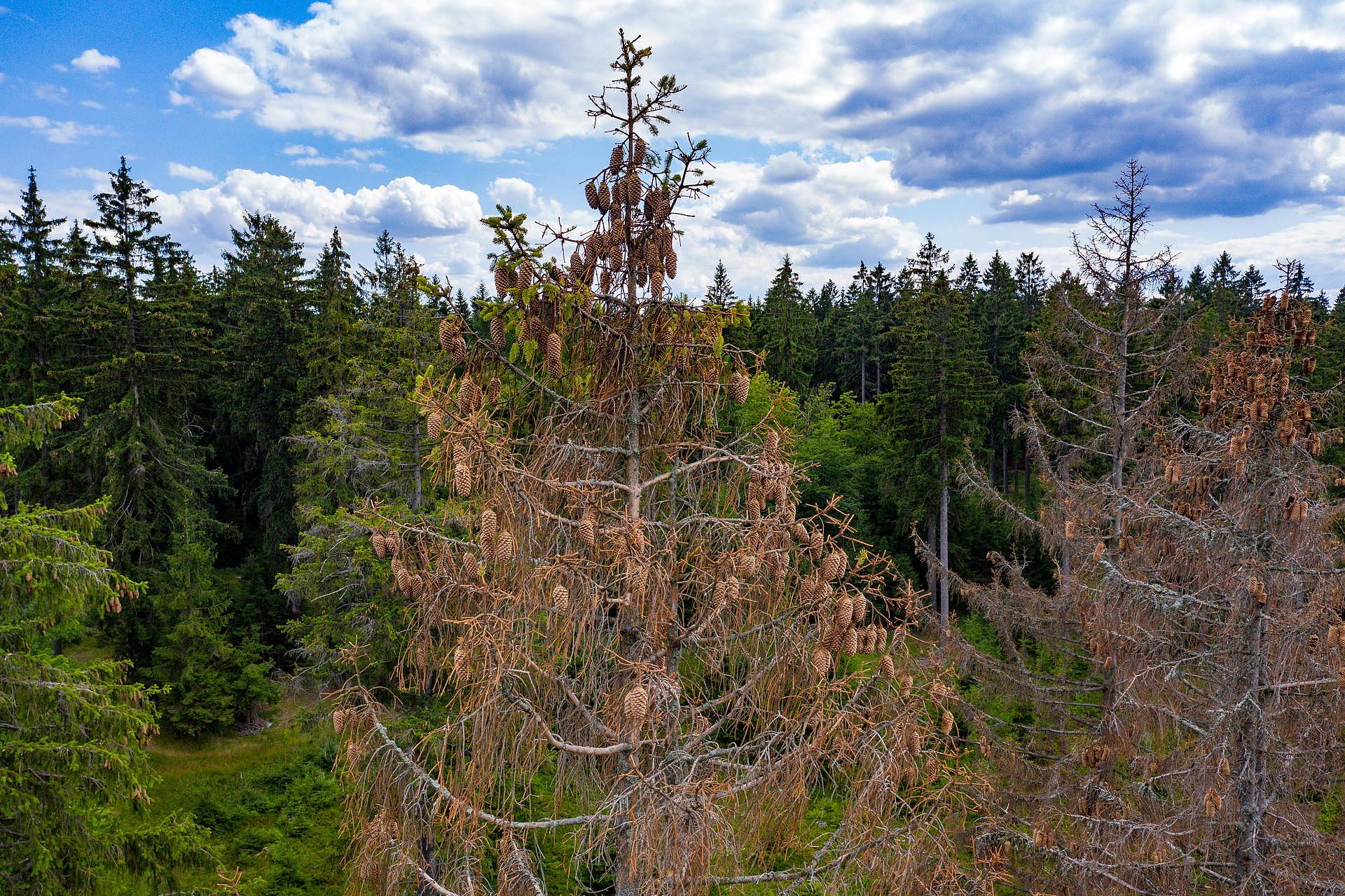 Will man den Wissenschaftlern und den Daten zum Klimawandel nicht glauben, muss man sich nur unsere Wälder genauer anschauen – sie zeichnen deutlich! Viele Bäume treiben zwar im Frühjahr frische Nadeln bzw. frisches Laub aus. Fällt über den Sommer hinweg jedoch nicht genug Regen, vertrocknen diese schnell.