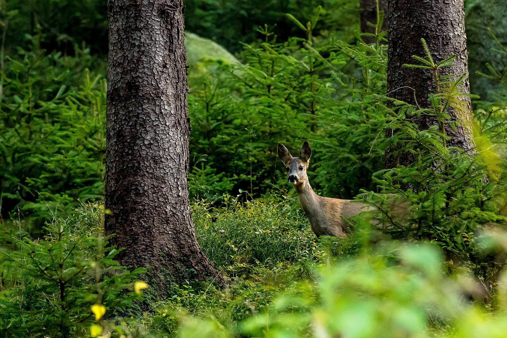 Im Spessart werden jedes Jahr knapp 4 000 Rehe, Wildschweine und Hirsche erlegt. Durch angepasste Schalenwildbestände können sich die natürlicherweise vorkom- menden Baumarten im Wesentlichen ohne Schutzmaßnahmen (wie etwa Zäune) natürlich verjüngen.